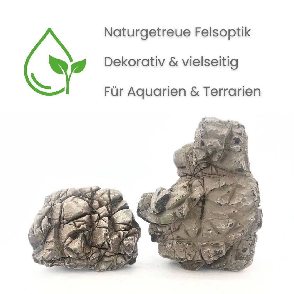 • Natürliche Optik & Struktur – Geo Rock Steine in grauen bis erdigen Farbtönen mit markanter, naturbelassener Oberfläche für eindrucksvolle und harmonische Unterwasserlandschaften.