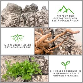 Dank ihrer naturbelassenen Struktur eignen sich die Aquascaping Steine hervorragend für detailreiche Layouts – ob felsige Unterwasserlandschaften, minimalistische Designs oder naturnahe Biotop-Aquarien.