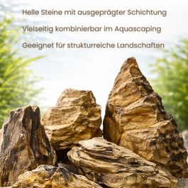 Durch ihre markante, schichtartige Struktur eignen sie sich ideal für Aquascaping-Layouts mit klarer Linienführung sowie für naturnahe Naturaquarien mit felsigem Charakter.