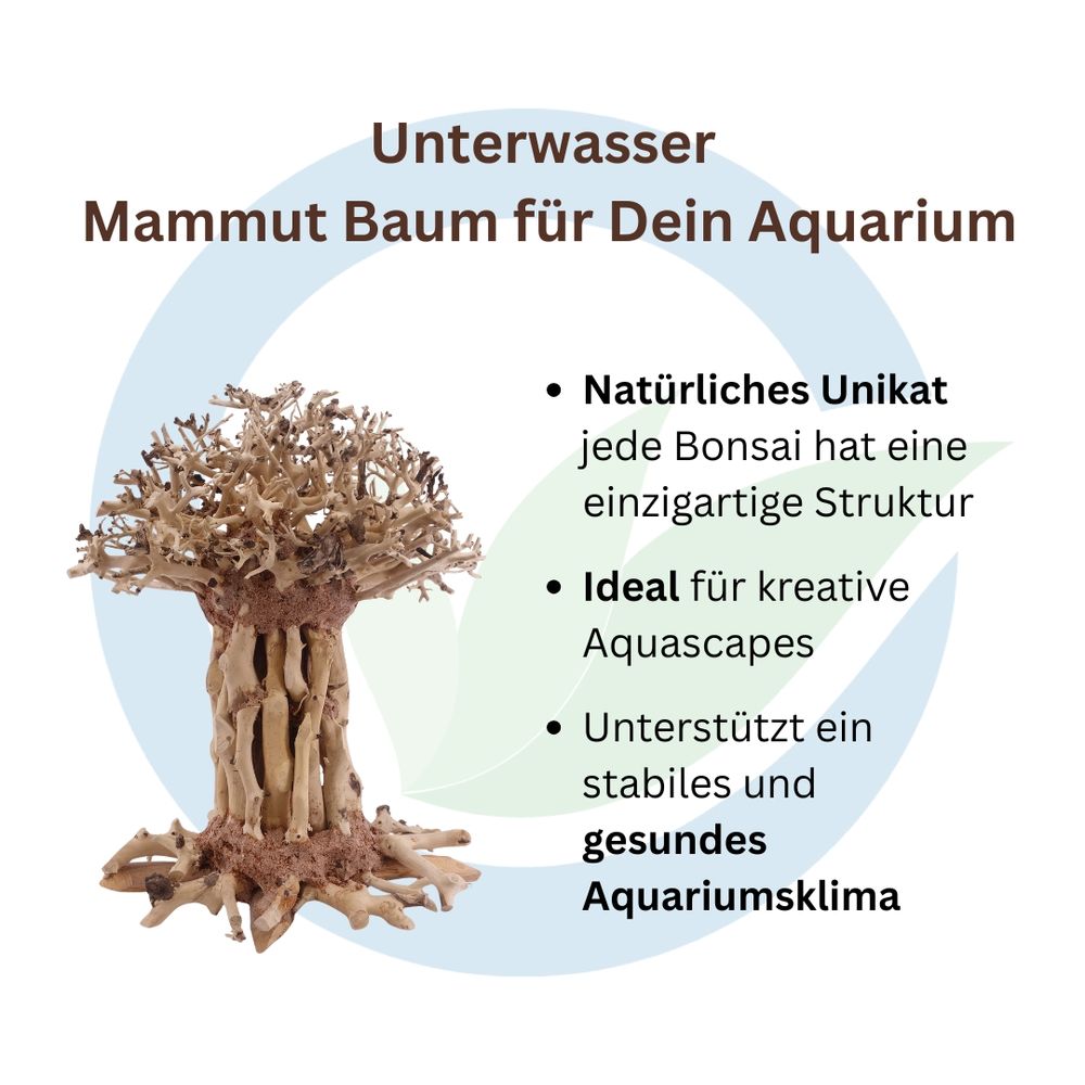 Unsere Unterwasser Bonsai Mammut Bäume sind handgefertigte Unikate aus natürlichen Materialien. Mit Moos bepflanzt entwickelt sich schnell ein natürlich aussehender Bonsai Baum für eine außergewöhnliche Unterwasserlandschaft. Die Bäume bestechen durch ihre bizarren Formen und feinen Verzweigungen.